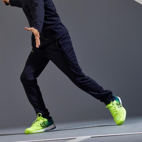 Ce pantalon a été testé dans des conditions hivernales par des joueurs de tennis et de badminton de tous niveaux (débutantes à expertes). Ils ont adoré le confort de ce produit avant pendant et après le jeu. Ses grands zips en bas de chaque jambe permettent de le retirer sans enlever ses chaussures pour passer simplement de la tenue d'échauffement à la tenue de match.