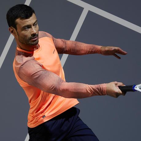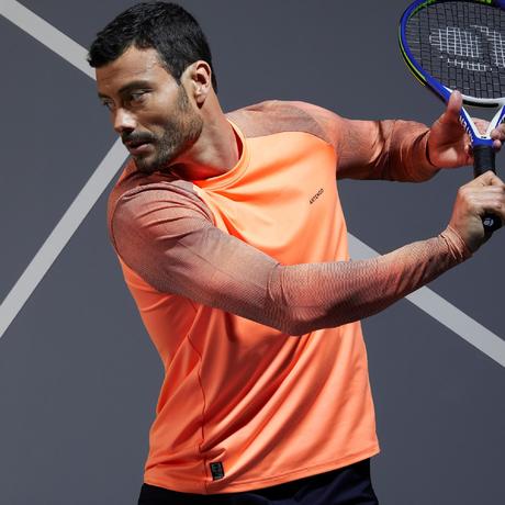 Ce tee shirt manches longues a été testé dans des conditions hivernales par des joueurs de tennis en club de niveau intermediaire a expert. La praticité de ses manches a été reconnue pour leur tenue en position relevée.